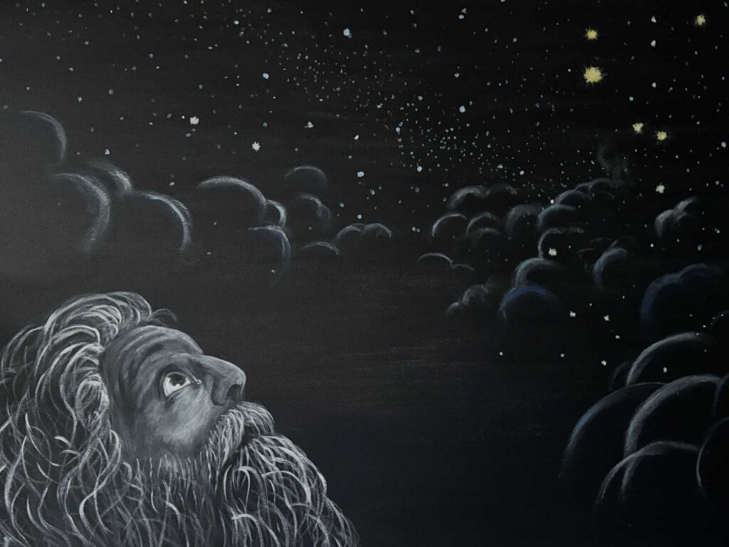 Der Herzenswunsch, von Gott berührt zu werden und einen kleinen Blick in den Himmel werfen zu dürfen, hat mich dazu veranlasst, dieses Bild zu malen