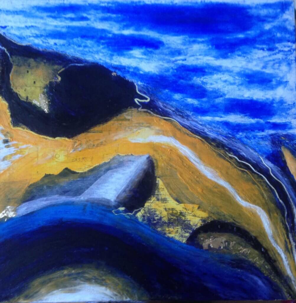 Es gibt ein LIed, das heißt: „Ein feste Burg ist unser Gott“daran musste ich beim Malen dieses Bildes denken. Egal wie dunkel und schwer das Leben manchmal sein kann, wenn wir Gott als unsere feste Burg haben, dann düren wir uns geborgen wissen. Wir dürfen darauf vertrauen, dass Segensströme fließen werden, auch wenn wir sie jetzt noch nicht sehen können.
