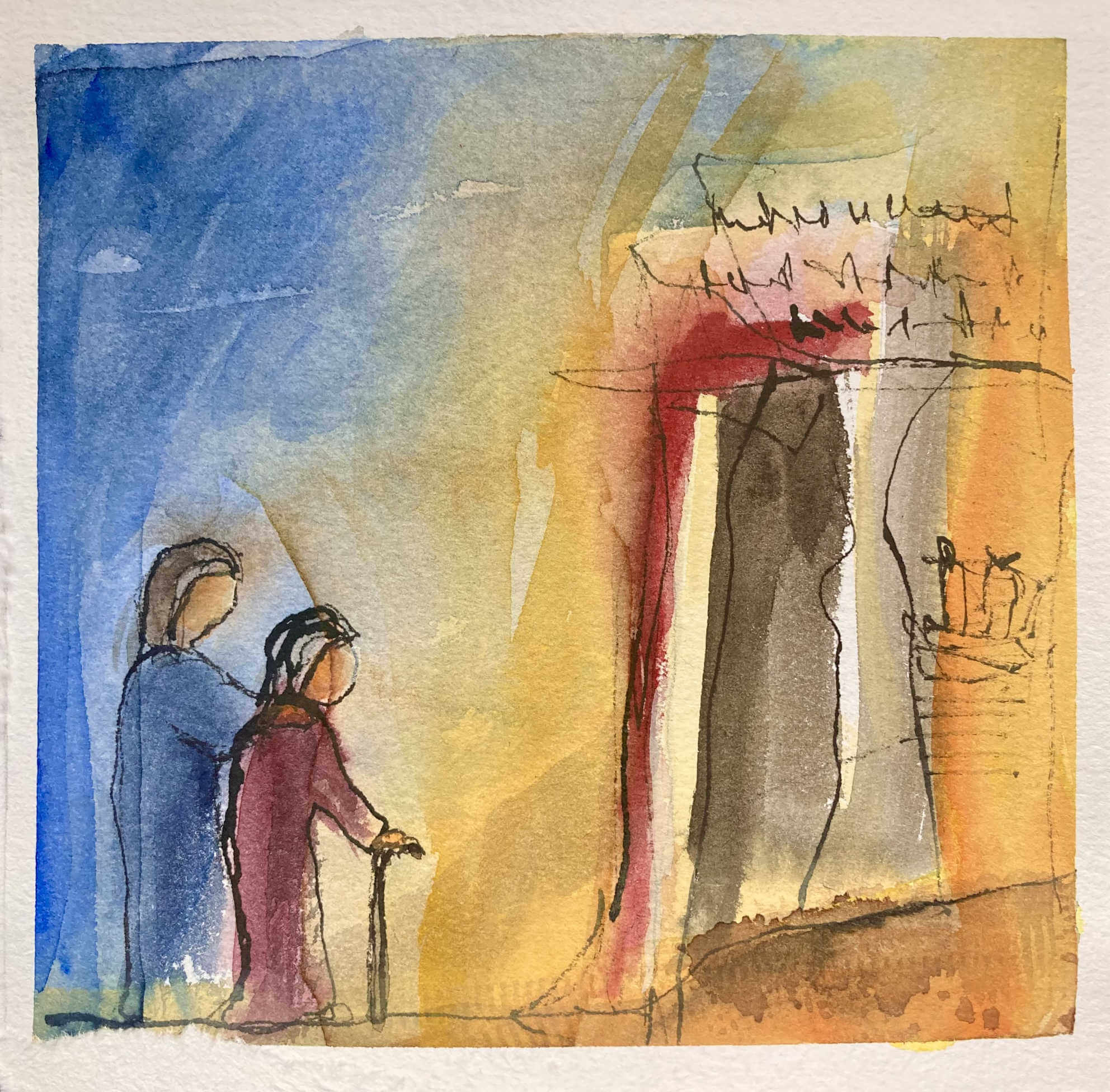 Aquarell Mixed Media auf Papier – Dieses Bild ist nur als Druck erhältlich (Ohne Rahmen) Es steht für den letzten Lebensabschnitt, wo geht der Weg hin, was kommt danach?