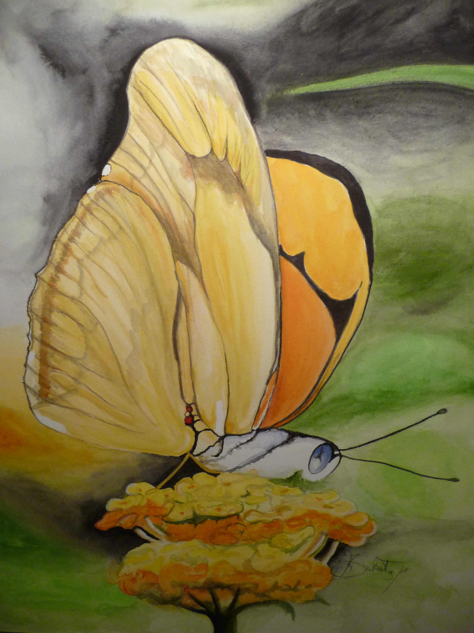 Aquarell auf Papier – Der Schmetterling ist eines der beeindruckendsten Tiere, da er sich erst durch Metamorphose ins Leben gekämpft hat. Er ist ein Symbol der Hoffnung
